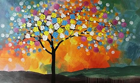 Amazon.com: PDECOR Spring Blossoming Flower Tree Rainy Day Vivid Color Original Abstract Landscape Painting Palette Knife Thick Brush Stroke 20x36 Large Acrylic Artwork Modern Home Decor by Cheney Signed: Paintings
