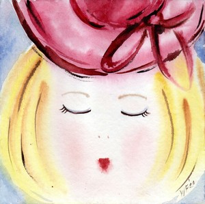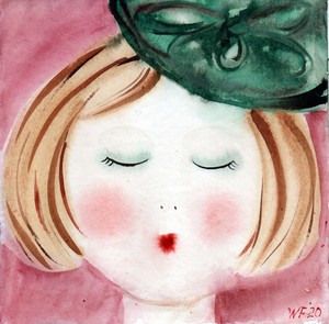 Aquarell Original 20x20cm Bild Mädchen Frau Porträt Art Deco Naiv Hut signiert | eBay